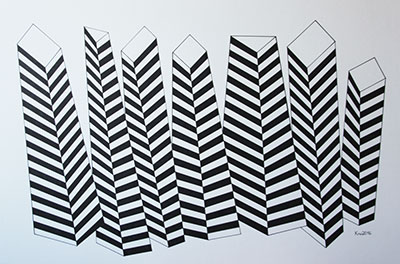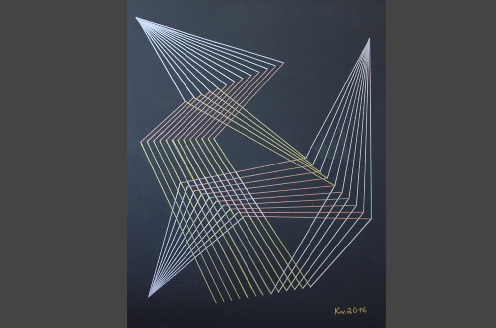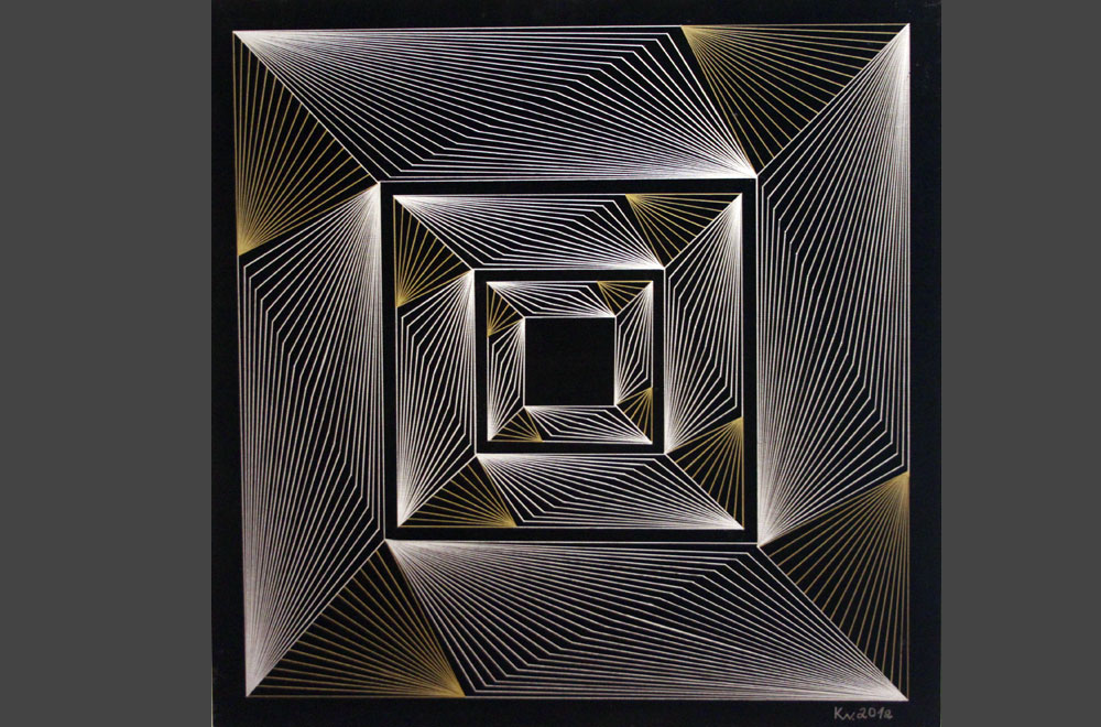 So arbeite ich auch bildhauerisch an Sandsteinen.Bei aller Experimentierfreudigkeit in den Materialien durchziehe ich Arbeiten doch ein unverwechselbar machendes Merkmal. Ich arbeite im Stile des Konstruktivismus, der kinetischen Kunst der „OP-Art“.