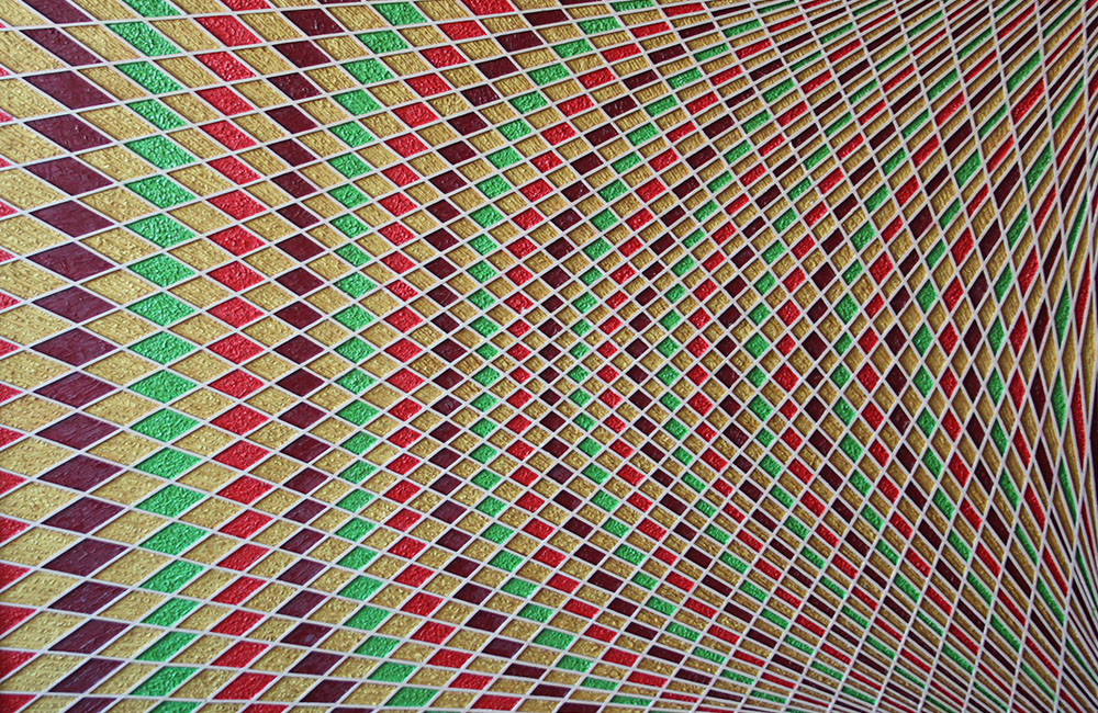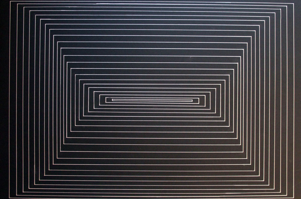 Geometrische Strukturen, Rasterungen, Widerholungen mit minimalen Abweichungen sind Erkennungsmerkmale der Werke.